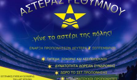Καλωσορίζουμε τον Χ. Αποστολίδη στην οικογένεια του Αστέρα Ο ΑΟΝ Αστέρας Ρεθύμνου ανακοινώνει την έναρξη της συνεργασίας με τον ποδοσφαιριστή Χαράλαμπο Αποστολίδη. Ο Χαράλαμπος Αποστολίδης είναι γεννημένος... 28.08.2024 13:23