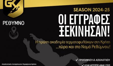 GK Goalkeeper Academy 2024-25: Αρχισαν οι εγγραφές σε όλους τους Νομούς της Κρήτης Το πληρέστερο πρόγραμμα εκπαίδευσης τερματοφυλάκων από φέτος σε όλη την Κρήτη 15.08.2024 14:35