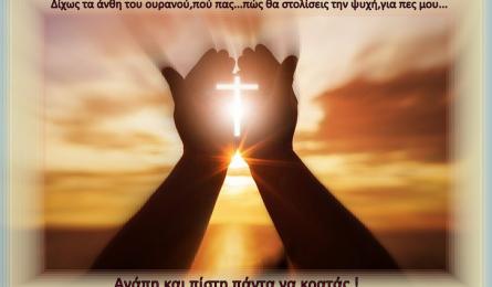 Αγάπη και πίστη! Αγάπη και πίστη ! πάντα να κρατάς, στου κόσμου όλα τα δεινά κρατήσου, ποτέ μην πάψεις να αγαπάς, θυμήσου και τη ζωή αγκάλιασε ,μη σταματάς... 05.04.2022 10:00