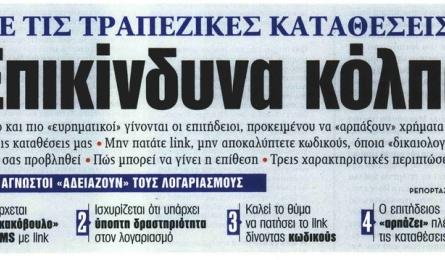 Τραπεζικές απάτες με SMS Μορφή χιονοστιβάδας έχουν λάβει οι καταγγελίες για τραπεζικές απάτες, με θύματα να καταγγέλλουν ότι χάνουν μικρές περιουσίες. Οι επιτήδειοι συνήθως... 27.10.2021 10:00