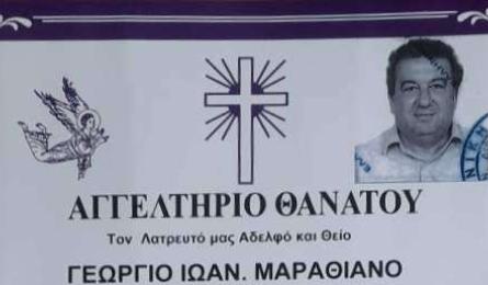 Ρέθυμνο: Πένθος στο Γαράζο για την απώλεια του πρώην Κοινοτάρχη Γεωργίου Μαραθιανού Στο πένθος βυθίστηκε η κοινωνία του Γαράζου Μυλοποτάμου που αποχαιρετά με θλίψη τον πρώην Πρόεδρο της Κοινότητας Γεώργιο Ιωαν. Μαραθιανό. 28.02.2026 21:04