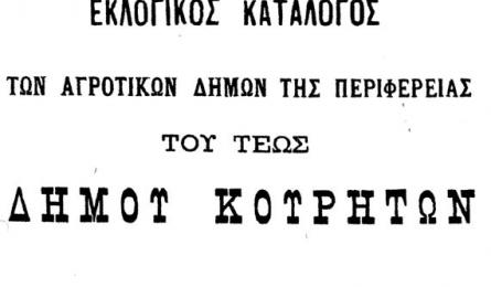 Εκλογικός κατάλογος του έτους 1913 Ο παρακάτω εκλογικός κατάλογος, που είχε την καλοσύνη να μου παραδώσει ο αείμνηστος, αγαπητός καθηγητής-ερευνητής Γιώργος Εκκεκάκης, τυπώθηκε το έτος... 13.10.2021 11:00