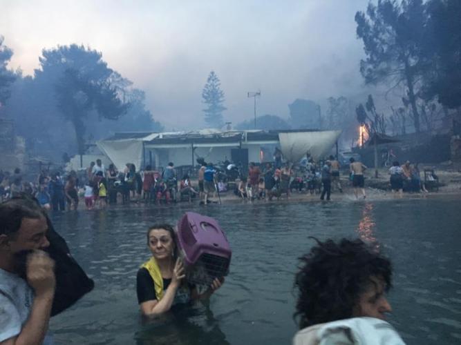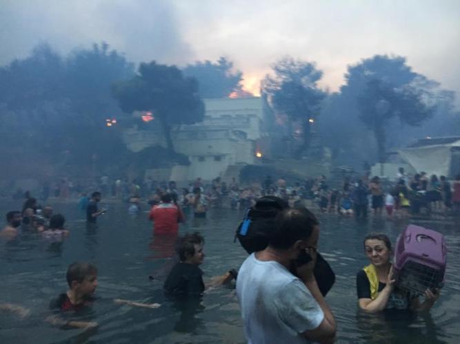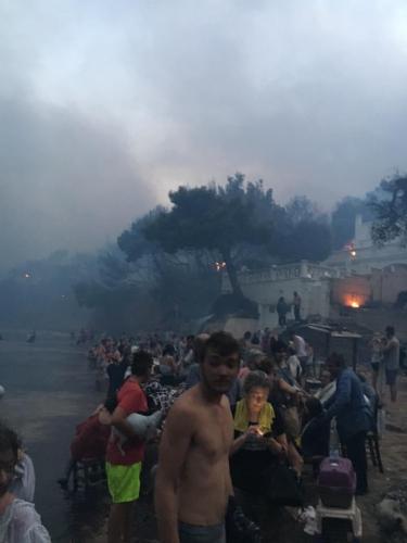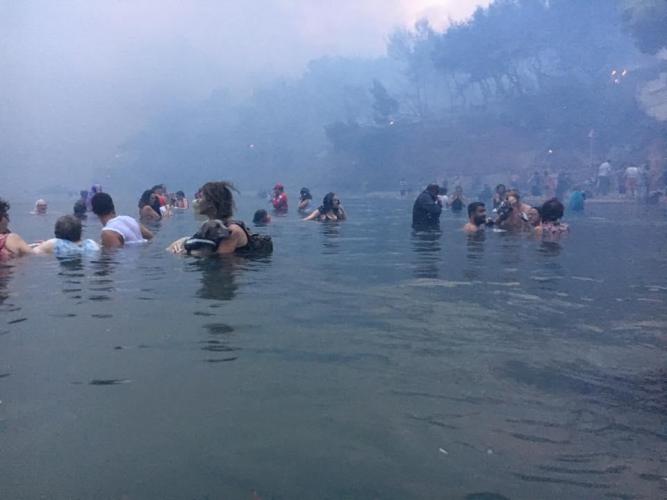 Παρά την αγωνιώδη προσπάθεια τους να σωθούν από τη μανία της πυρκαγιάς και ενώ ήταν μέσα στο νερό αρκετοί ήταν εκείνοι που σήκωσαν το κινητό τους τηλέφωνο καταγράφοντας σκηνές τρόμου και πανικού. Γυναίκες και μικρά παιδιά να κολυμπούν, ηλικιωμένοι να βρίσκονται στην ακτή, άλλοι έχοντας αγκαλιά τα κατοικίδια και άλλοι με τους αγαπημένους τους ανθρώπους περιμένοντας καρτερικά τη βοήθεια που μόνο από τη θάλασσα μπορούσε να φτάσει.