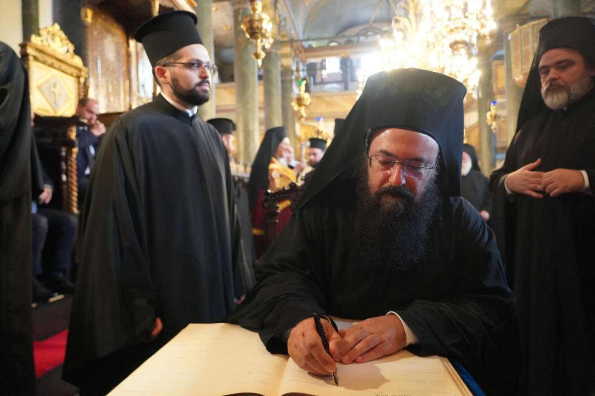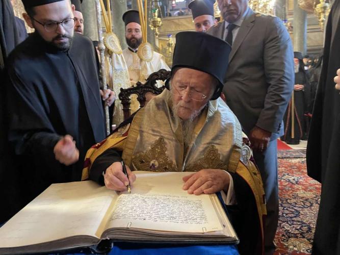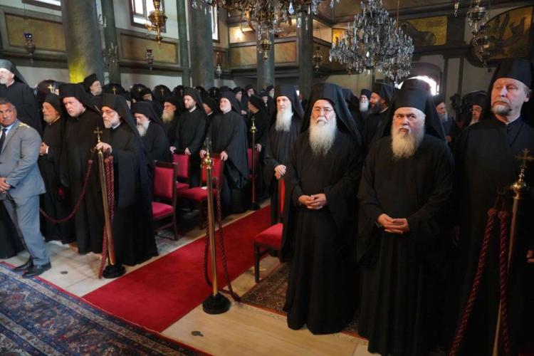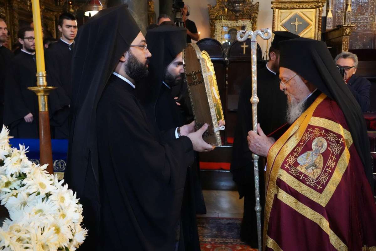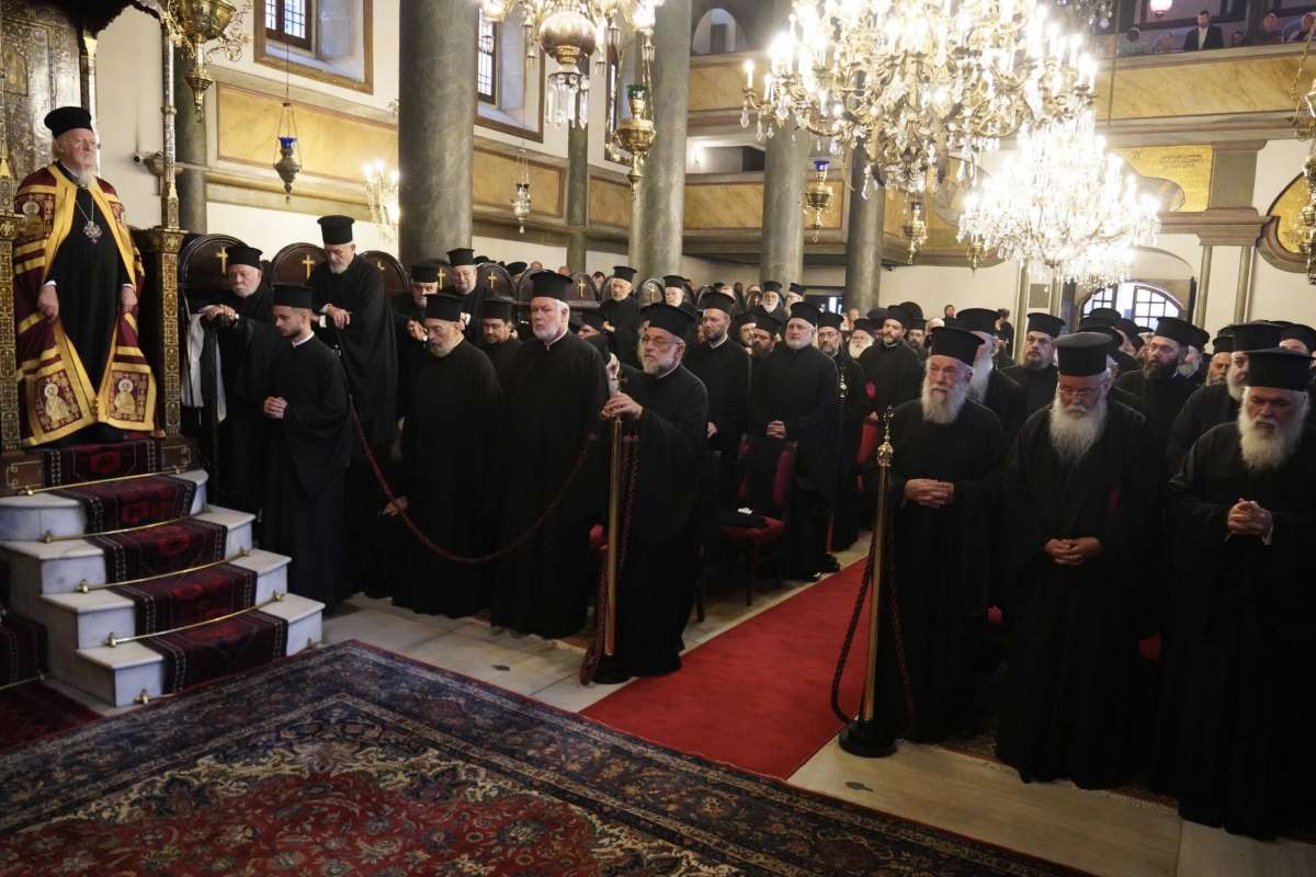 Η Α.Θ. Παναγιότης ο Οικουμενικός Πατριάρχης κ.κ. Βαρθολομαίος χοροστάτησε στη Θεία Λειτουργία, συγχοροστατούντων των Αρχιερέων Σεβ. Ταλλίνης και πάσης Εσθονίας κ. Στεφάνου, Γέροντος Χαλκηδόνος κ. Εμμανουήλ, Γέροντος Δέρκων κ. Αποστόλου, Γέροντος Πριγκηποννήσων κ. Δημητρίου, Βρυούλων κ. Παντελεήμονος, Αγκύρας κ. Ιερεμία, Καναδά κ. Σωτηρίου, Δέρβης κ. Ιεζεκιήλ, Βοστώνης κ. Μεθοδίου, Βιζύης κ. Αθηναγόρα, Καρπάθου και Κάσου κ. Αμβροσίου, Μιλήτου κ. Αποστόλου, Ανέων κ. Μακαρίου, Προικοννήσου κ. Ιωσήφ, Φιλαδελφείας κ. Μελίτωνα, Σεβαστείας κ. Σεραφείμ, Διδυμοτείχου, Ορεστιάδος και Σουφλίου κ. Δαμασκηνού, Ξάνθης κ. Παντελεήμονα, Σάμου και Ικαρίας κ. Ευσεβίου, Μυριοφύτου και Περιστάσεως κ. Ειρηναίου, Μύρων κ. Χρυσοστόμου, Θυατείρων και Μεγάλης Βρεταννίας κ. Νικήτα, Κολωνείας κ. Αθανασίου, Λαοδικείας κ. Θεοδωρήτου, Ικονίου κ. Θεολήπτου, Κασσανδρείας κ. Νικοδήμου, Ειρηνουπόλεως κ. Νικάνδρου, Σερρών και Νιγρίτης κ. Θεολόγου, Αρκαλοχωρίου, Καστελλίου και Βιάνου κ. Ανδρέα, Σιδηροκάστρου κ. Μακαρίου, Πιττσβούργου κ. Σάββα, Αγίου Φραγκίσκου κ. Γερασίμου, Εδέσσης και Πέλλης κ. Ιωήλ, Σάρδεων κ. Ευαγγέλου, Βελγίου κ. Αθηναγόρα, Ρόδου κ. Κυρίλλου, Ελευθερουπόλεως κ. Χρυσοστόμου, Σερβίων και Κοζάνης κ. Παύλου, Νεαπόλεως και Σταυρουπόλεως κ. Βαρνάβα, Κουόπιο και Καρελίας κ. Αρσενίου, Γουίννιπεγκ κ. Ιλαρίωνος, Λέρου, Καλύμνου και Αστυπαλαίας κ. Παισίου, Κρήτης κ. Ευγενίου, Κορέας κ. Αμβροσίου, Ιταλίας κ. Πολυκάρπου, Χόνγκ Κόνγκ κ. Νεκταρίου, Κρήνης κ. Κυρίλλου, Κώου και Νισύρου κ. Ναθαναήλ, Άρτης κ. Καλλινίκου, Καλλιουπόλεως και Μαδύτου κ. Στεφάνου, Αμερικής κ. Ελπιδοφόρου, Σιγκαπούρης κ. Κωνσταντίνου, Αυστρίας κ. Αρσενίου, Μπουένος Άιρες κ. Ιωσήφ, Νικοπόλεως και Πρεβέζης κ. Χρυσοστόμου, Ιερισσού, Αγίου Όρους και Αρδαμερίου κ. Θεοκλήτου, Κυδωνιών κ. Αθηναγόρα, Μαρωνείας και Κομοτηνής κ. Παντελεήμονα, Πισιδίας κ. Ιώβ, Κίτρους κ. Γεωργίου, Σουηδίας κ. Κλεόπα, Ιωαννίνων κ. Μαξίμου, Ελασσώνος κ. Χαρίτωνα, Σηλυβρίας κ. Μαξίμου, Γρεβενών κ. Δαυίδ, Αδριανουπόλεως κ. Αμφιλοχίου, Νέας Ιερσέης κ. Αποστόλου, Όουλου κ. Ηλία, Αυστραλίας κ. Μακαρίου, Νέας Κρήνης και Καλαμαριάς κ. Ιουστίνου, Πέτρας και Χερρονήσου κ. Γερασίμου, Σμύρνης κ. Βαρθολομαίου, Ίμβρου και Τενέδου κ. Κυρίλλου, Ιεραπύτνης και Σητείας κ. Κυρίλλου, Φιλίππων, Νεαπόλεως και Θάσου κ. Στεφάνου, Σύμης κ. Χρυσοστόμου, Σικάγου κ. Ναθαναήλ, Νέας Ζηλανδίας κ. Μύρωνος, Ελβετίας κ. Μαξίμου, Σισανίου και Σιατίστης κ. Αθανασίου, Λήμνου και Αγίου Ευστρατίου κ.Ιεροθέου, Θεσσαλονίκης κ. Φιλοθέου, Ρεθύμνης και Αυλοποτάμου κ. Προδρόμου, Ιρλανδίας κ. Ιακώβου, Ισπανίας και Πορτογαλίας κ. Βησσαρίωνος, Σαράντα Εκκλησιών κ. Ανδρέα, Προύσης κ. Ιωακείμ, Γαλλίας κ. Δημητρίου, Λαγκαδά, Λητής και Ρεντίνης κ. Πλάτωνος, Καστορίας κ. Καλλινίκου, Πολυανής και Κιλκισίου κ. Βαρθολομαίου, Ντένβερ κ. Κωνσταντίνου, Δράμας κ. Δωροθέου, Παραμυθίας, Φιλιατών και Γηρομερίου κ. Σεραπίωνος, Φλωρίνης, Πρεσπών και Εορδαίας κ. Ειρηναίου, Σελευκείας κ. Θεοδώρου, και Μεξικού κ. Ιακώβου, Πανιερ. Ιεραπόλεως κ. Αντωνίου, Νύσσης κ. Γρηγορίου, Ασπένδου κ. Ιερεμία, και Παμφίλου κ. Δανιήλ, και Θεοφιλ. Τορόντο κ. Ανδρέα, Πιαρνού και Σααρέμα κ. Αλεξάνδρου, Πέρθης κ. Ελπιδίου, Αδελαίδος κ. Σιλουανού, Μελβούρνης κ. Κυριακού, Χώρας κ. Ευμενίου, και Βρισβάνης κ. Βαρθολομαίου.