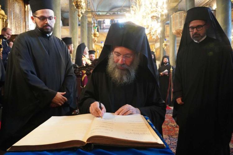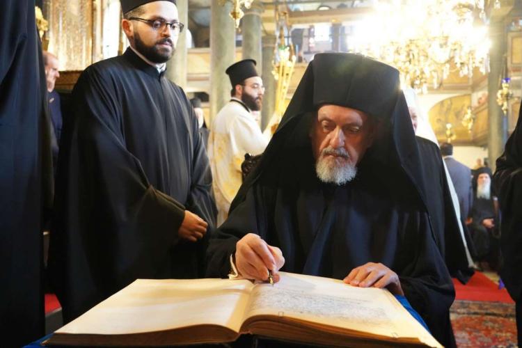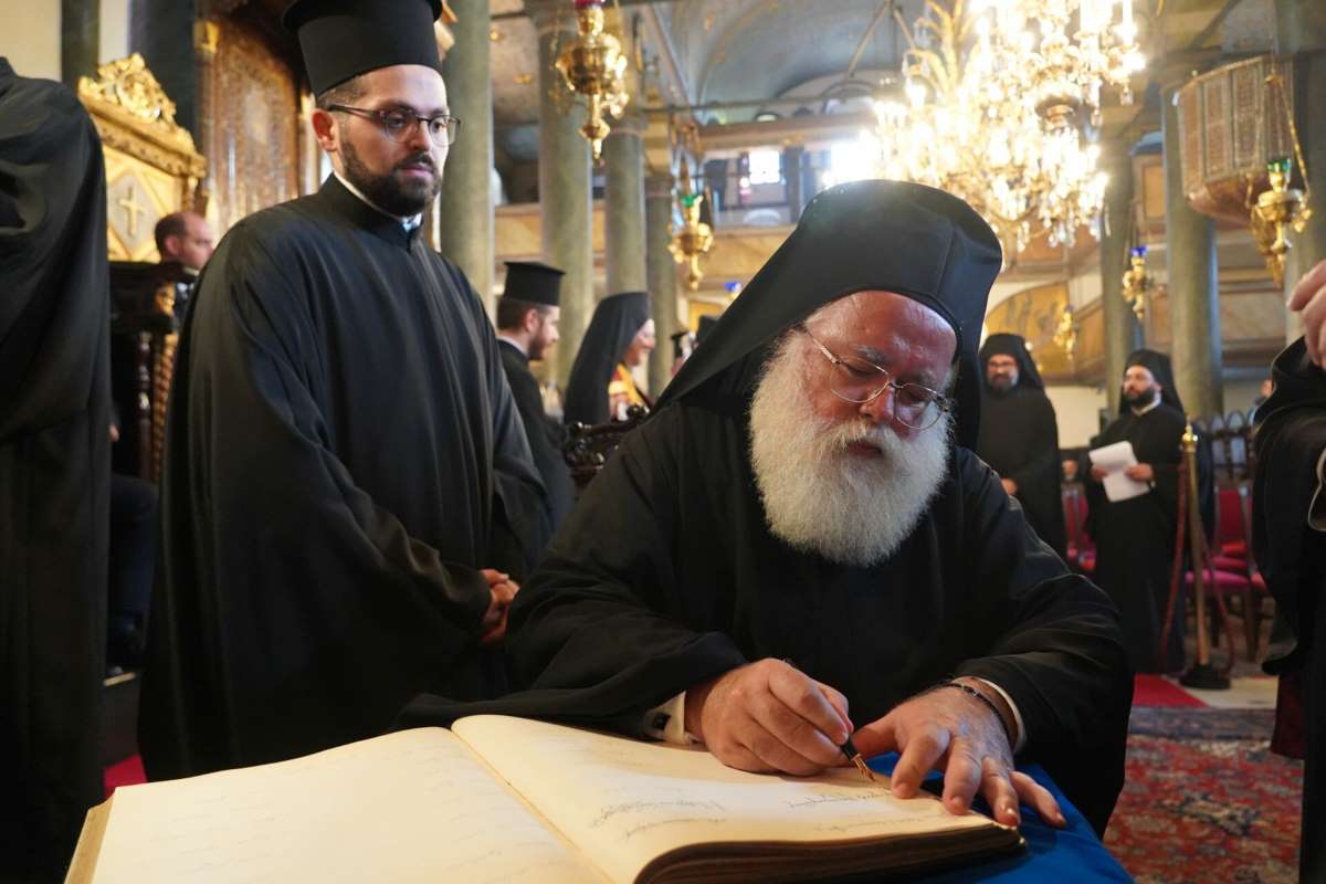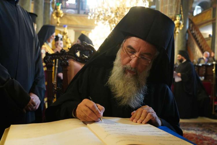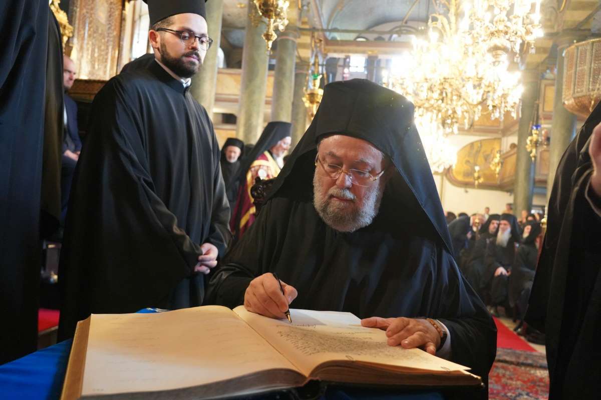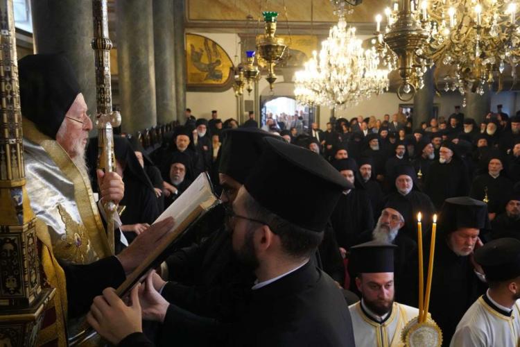 Η Α.Θ. Παναγιότης ο Οικουμενικός Πατριάρχης κ.κ. Βαρθολομαίος χοροστάτησε στη Θεία Λειτουργία, συγχοροστατούντων των Αρχιερέων Σεβ. Ταλλίνης και πάσης Εσθονίας κ. Στεφάνου, Γέροντος Χαλκηδόνος κ. Εμμανουήλ, Γέροντος Δέρκων κ. Αποστόλου, Γέροντος Πριγκηποννήσων κ. Δημητρίου, Βρυούλων κ. Παντελεήμονος, Αγκύρας κ. Ιερεμία, Καναδά κ. Σωτηρίου, Δέρβης κ. Ιεζεκιήλ, Βοστώνης κ. Μεθοδίου, Βιζύης κ. Αθηναγόρα, Καρπάθου και Κάσου κ. Αμβροσίου, Μιλήτου κ. Αποστόλου, Ανέων κ. Μακαρίου, Προικοννήσου κ. Ιωσήφ, Φιλαδελφείας κ. Μελίτωνα, Σεβαστείας κ. Σεραφείμ, Διδυμοτείχου, Ορεστιάδος και Σουφλίου κ. Δαμασκηνού, Ξάνθης κ. Παντελεήμονα, Σάμου και Ικαρίας κ. Ευσεβίου, Μυριοφύτου και Περιστάσεως κ. Ειρηναίου, Μύρων κ. Χρυσοστόμου, Θυατείρων και Μεγάλης Βρεταννίας κ. Νικήτα, Κολωνείας κ. Αθανασίου, Λαοδικείας κ. Θεοδωρήτου, Ικονίου κ. Θεολήπτου, Κασσανδρείας κ. Νικοδήμου, Ειρηνουπόλεως κ. Νικάνδρου, Σερρών και Νιγρίτης κ. Θεολόγου, Αρκαλοχωρίου, Καστελλίου και Βιάνου κ. Ανδρέα, Σιδηροκάστρου κ. Μακαρίου, Πιττσβούργου κ. Σάββα, Αγίου Φραγκίσκου κ. Γερασίμου, Εδέσσης και Πέλλης κ. Ιωήλ, Σάρδεων κ. Ευαγγέλου, Βελγίου κ. Αθηναγόρα, Ρόδου κ. Κυρίλλου, Ελευθερουπόλεως κ. Χρυσοστόμου, Σερβίων και Κοζάνης κ. Παύλου, Νεαπόλεως και Σταυρουπόλεως κ. Βαρνάβα, Κουόπιο και Καρελίας κ. Αρσενίου, Γουίννιπεγκ κ. Ιλαρίωνος, Λέρου, Καλύμνου και Αστυπαλαίας κ. Παισίου, Κρήτης κ. Ευγενίου, Κορέας κ. Αμβροσίου, Ιταλίας κ. Πολυκάρπου, Χόνγκ Κόνγκ κ. Νεκταρίου, Κρήνης κ. Κυρίλλου, Κώου και Νισύρου κ. Ναθαναήλ, Άρτης κ. Καλλινίκου, Καλλιουπόλεως και Μαδύτου κ. Στεφάνου, Αμερικής κ. Ελπιδοφόρου, Σιγκαπούρης κ. Κωνσταντίνου, Αυστρίας κ. Αρσενίου, Μπουένος Άιρες κ. Ιωσήφ, Νικοπόλεως και Πρεβέζης κ. Χρυσοστόμου, Ιερισσού, Αγίου Όρους και Αρδαμερίου κ. Θεοκλήτου, Κυδωνιών κ. Αθηναγόρα, Μαρωνείας και Κομοτηνής κ. Παντελεήμονα, Πισιδίας κ. Ιώβ, Κίτρους κ. Γεωργίου, Σουηδίας κ. Κλεόπα, Ιωαννίνων κ. Μαξίμου, Ελασσώνος κ. Χαρίτωνα, Σηλυβρίας κ. Μαξίμου, Γρεβενών κ. Δαυίδ, Αδριανουπόλεως κ. Αμφιλοχίου, Νέας Ιερσέης κ. Αποστόλου, Όουλου κ. Ηλία, Αυστραλίας κ. Μακαρίου, Νέας Κρήνης και Καλαμαριάς κ. Ιουστίνου, Πέτρας και Χερρονήσου κ. Γερασίμου, Σμύρνης κ. Βαρθολομαίου, Ίμβρου και Τενέδου κ. Κυρίλλου, Ιεραπύτνης και Σητείας κ. Κυρίλλου, Φιλίππων, Νεαπόλεως και Θάσου κ. Στεφάνου, Σύμης κ. Χρυσοστόμου, Σικάγου κ. Ναθαναήλ, Νέας Ζηλανδίας κ. Μύρωνος, Ελβετίας κ. Μαξίμου, Σισανίου και Σιατίστης κ. Αθανασίου, Λήμνου και Αγίου Ευστρατίου κ.Ιεροθέου, Θεσσαλονίκης κ. Φιλοθέου, Ρεθύμνης και Αυλοποτάμου κ. Προδρόμου, Ιρλανδίας κ. Ιακώβου, Ισπανίας και Πορτογαλίας κ. Βησσαρίωνος, Σαράντα Εκκλησιών κ. Ανδρέα, Προύσης κ. Ιωακείμ, Γαλλίας κ. Δημητρίου, Λαγκαδά, Λητής και Ρεντίνης κ. Πλάτωνος, Καστορίας κ. Καλλινίκου, Πολυανής και Κιλκισίου κ. Βαρθολομαίου, Ντένβερ κ. Κωνσταντίνου, Δράμας κ. Δωροθέου, Παραμυθίας, Φιλιατών και Γηρομερίου κ. Σεραπίωνος, Φλωρίνης, Πρεσπών και Εορδαίας κ. Ειρηναίου, Σελευκείας κ. Θεοδώρου, και Μεξικού κ. Ιακώβου, Πανιερ. Ιεραπόλεως κ. Αντωνίου, Νύσσης κ. Γρηγορίου, Ασπένδου κ. Ιερεμία, και Παμφίλου κ. Δανιήλ, και Θεοφιλ. Τορόντο κ. Ανδρέα, Πιαρνού και Σααρέμα κ. Αλεξάνδρου, Πέρθης κ. Ελπιδίου, Αδελαίδος κ. Σιλουανού, Μελβούρνης κ. Κυριακού, Χώρας κ. Ευμενίου, και Βρισβάνης κ. Βαρθολομαίου.