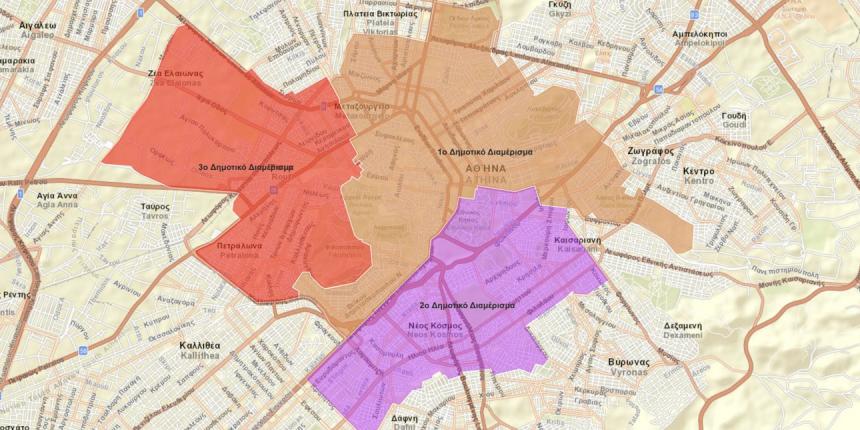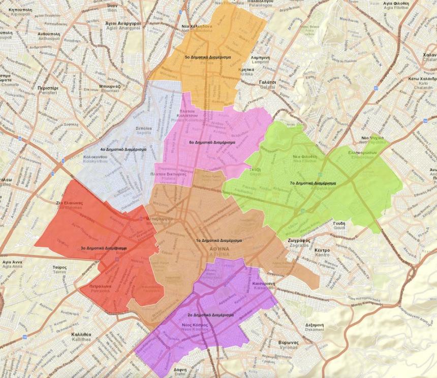 Ο χάρτης των 7 διαμερισμάτων της Αθήνας