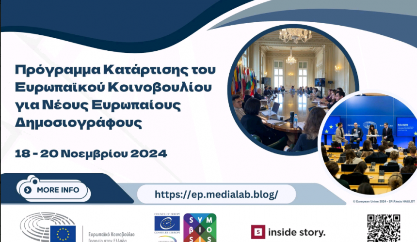 Το Γραφείο του Ευρωπαϊκού Κοινοβουλίου στην Ελλάδα, η Συμβίωση-Σχολή Πολιτικών Σπουδών του Συμβουλίου της Ευρώπης στην Ελλάδα και το Inside Story σας προσκαλούν να συμμετάσχετε στο Πρόγραμμα Κατάρτισης Νέων Ευρωπαίων Δημοσιογράφων του Ευρωπαϊκού Κοινοβουλίου 2024-2025.