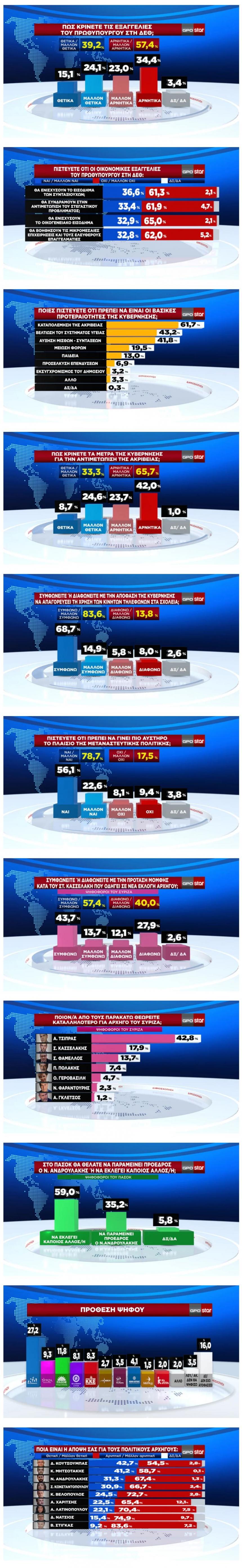 Νέα Δημοκρατία 27,2%, ΠΑΣΟΚ 11,8%, ΣΥΡΙΖΑ 9,3%, ΚΚΕ 8,3%, Ελληνική Λύση 8,1%, Φωνή Λογικής 4,1%, Πλεύση Ελευθερίας 3,5%, ΝΙΚΗ 2,7% και Νέα Αριστερά 2%. Σημειώνεται ότι η εταιρεία δεν παρουσίασε αναγωγή επί των εγκύρων ή εκτίμηση ψήφου.