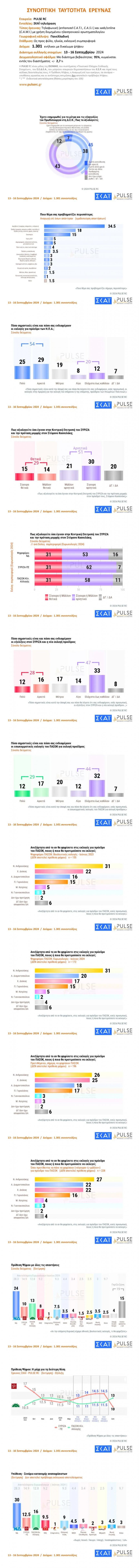 Την επιστροφή της ΝΔ σε ποσοστά μεγαλύτερα των ευρωεκλογών στην εκτίμηση ψήφου κατέγραψε η εταιρεία Pulse σε δημοσκόπηση που παρουσιάστηκε στο κεντρικό δελτίο του Σκάι: στην εκτίμηση ψήφου το κυβερνών κόμμα είναι στο 30%, με δεύτερο το ΠΑΣΟΚ που έχει εκτίμηση ψήφου 16% - δηλαδή 3,2 μονάδες πάνω από ευρωεκλογές - και τρίτο τον ΣΥΡΙΖΑ, που «γράφει» εκτίμηση ψήφου στο 12,5%, με απώλειες σχεδόν 2,5 μονάδων σε σχέση με με τις ευρωεκλογές του Ιουνίου.