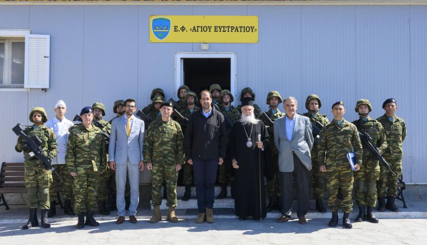 Στη συνέχεια, συνοδευόμενος από τον Σεβασμιώτατο Μητροπολίτη Λήμνου και Αγίου Ευστρατίου κ.κ. Ιερόθεο Γ’, βρέθηκε στο Επιτηρητικό Φυλάκιο (ΕΦ) «ΑΓΙΟΥ ΕΥΣΤΡΑΤΙΟΥ», όπου περιηγήθηκε στις εγκαταστάσεις και ενημερώθηκε για τη στελέχωσή του, ενώ συνομίλησε με τα στελέχη και τους οπλίτες θητείας που το επανδρώνουν.