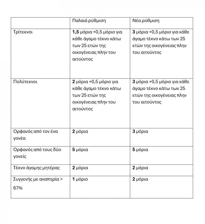 Τα Οικονομικά κριτήρια δεν μεταβάλλονται. Στα κοινωνικά κριτήρια έχουμε τις εξής μεταβολές: