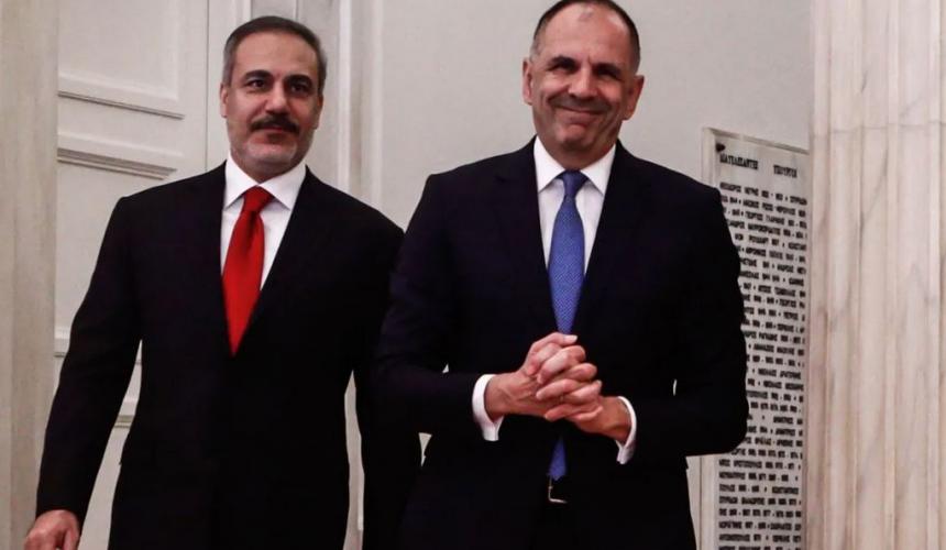 «Σκοπός μας είναι να φέρουμε κοντά τους δυο λαούς», είπε ο Έλληνας υπουργός Εξωτερικών Γιώργος Γεραπετρίτης μετά τη συνάντηση που είχε με τον Τούρκο ομόλογό του, Χακάν Φιντάν.