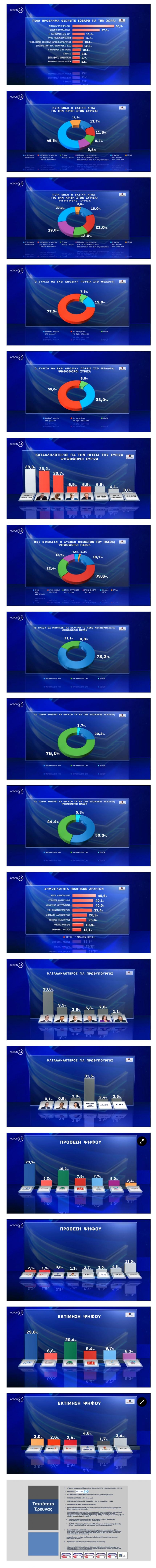Το πολιτικό τοπίο όπως προκύπτει με την τελευταία διάσπαση του ΣΥΡΙΖΑ κατέγραψε η δημοσκόπηση της Opinion Poll που παρουσιάστηκε στο κεντρικό δελτίο του Action 24. Σύμφωνα με τα αποτελέσματα της μέτρησης, η Νέα Δημοκρατία καταγράφεται στην εκτίμηση ψήφου στα ποσοστά των τελευταίων ευρωεκλογών, το ΠΑΣΟΚ ανεβαίνει στο 20,4%, αλλά με σαφές πρόβλημα κυβερνησιμότητας, ενώ ο ΣΥΡΙΖΑ μένει στο 6,6%, πίσω από την Ελληνική Λύση και το ΚΚΕ που ανταγωνίζονται για την τρίτη θέση, και πολύ κοντά στην Πλεύση Ελευθερίας που «γράφει» 6,3%.