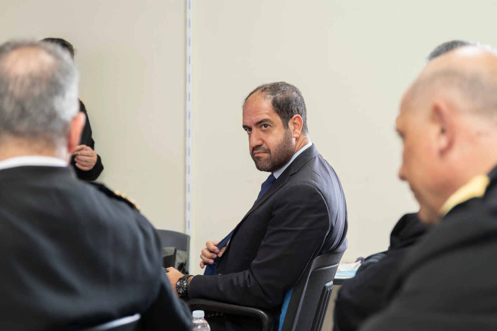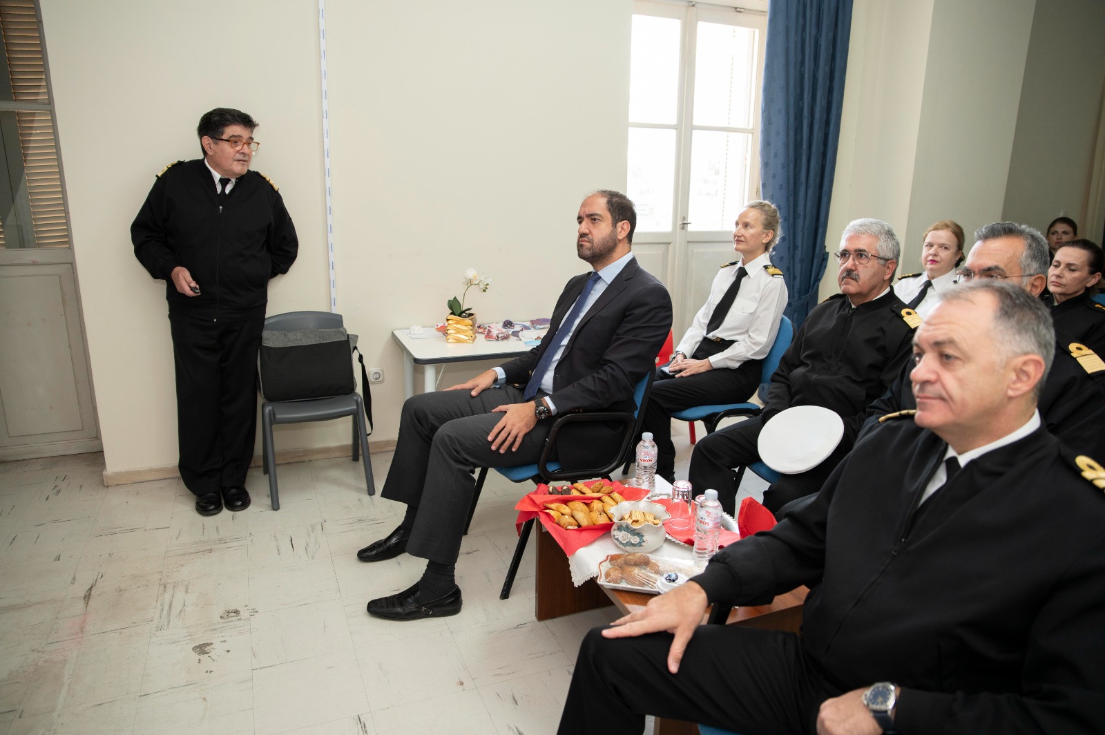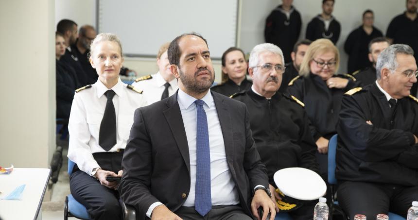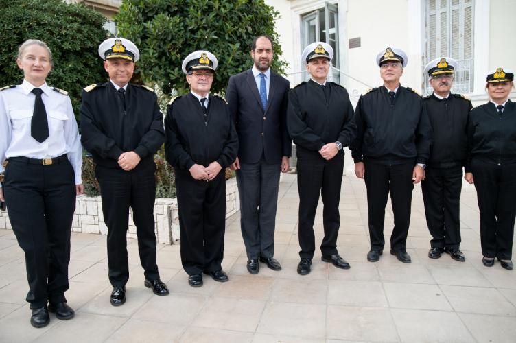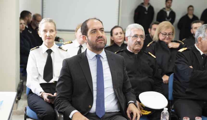 Εκεί τον υποδέχθηκαν o ΓΕΝ/ΔΥΓ Υποναύαρχος Αντώνιος Παπαγεωργίου (ΥΙ) ΠΝ, ο Διευθυντής ΝΝΑ Αρχιπλοίαρχος (ΥΙ) Σωτήριος Μωραΐτης ΠΝ και ο Διευθυντής ΚΕΠΦ Υποναύαρχος (ΥΙ) Δημοσθένης Δαμιανός ΠΝ.