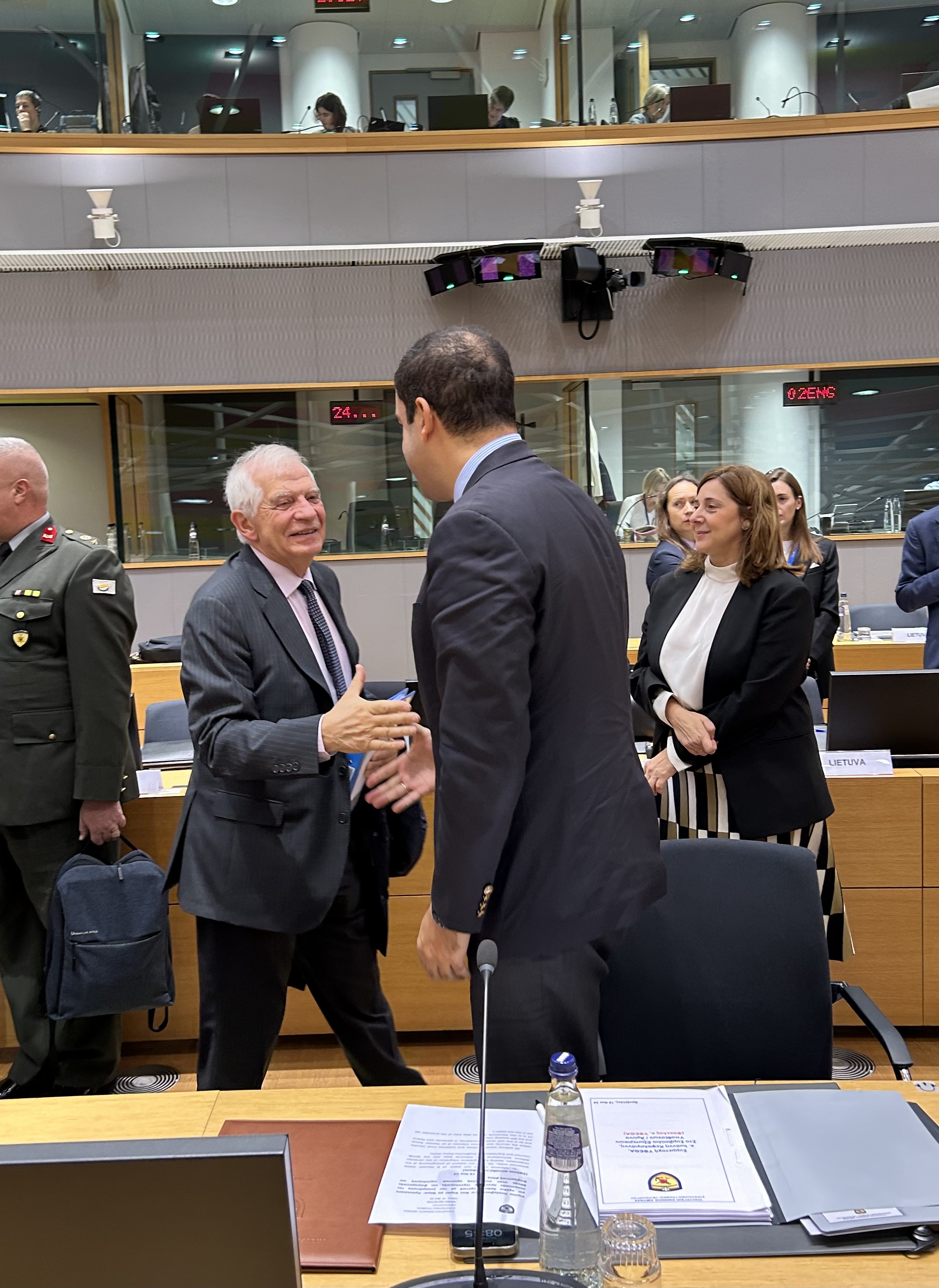Ο Υφυπουργός Εθνικής Άμυνας κ. Γιάννης Κεφαλογιάννης, συμμετείχε χθες, Τρίτη 19 Νοεμβρίου 2024, στο Συμβούλιο Εξωτερικών Υποθέσεων, σε σύνθεση Υπουργών Άμυνας, της Ευρωπαϊκής Ένωσης, το οποίο συνεδρίασε στις βρυξέλλες υπό την Προεδρία του Ύπατου Εκπροσώπου της ΕΕ για Θέματα Εξωτερικής Πολιτικής και Πολιτικής Ασφαλείας Ζοζέπ Μπορέλ (Josep Borrell).