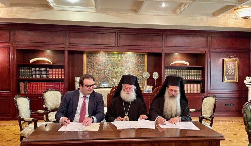 β) μεταξύ του Πατριαρχείου Αλεξανδρείας, της Γενικής Γραμματείας Θρησκευμάτων του Υπουργείου Παιδεία και των Γενικών Αρχείων του Ελληνικού κράτους, με σκοπό την υλοποίηση του έργου της απογραφής και του προσδιορισμού του αρχειακού υλικού του παλαιφάτου Πατριαρχείου και της εν συνεχεία ψηφιοποιήσεως αυτού.