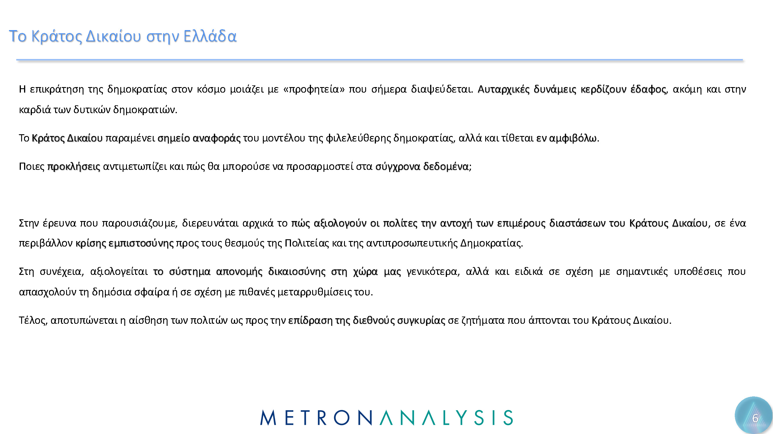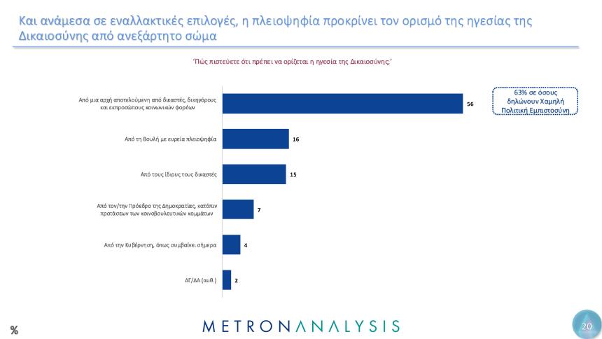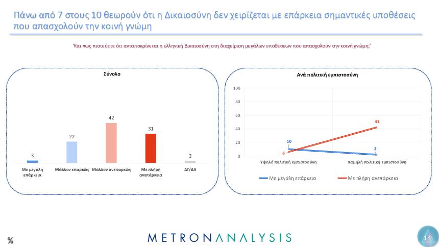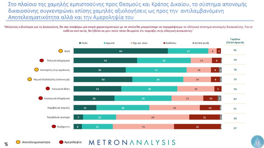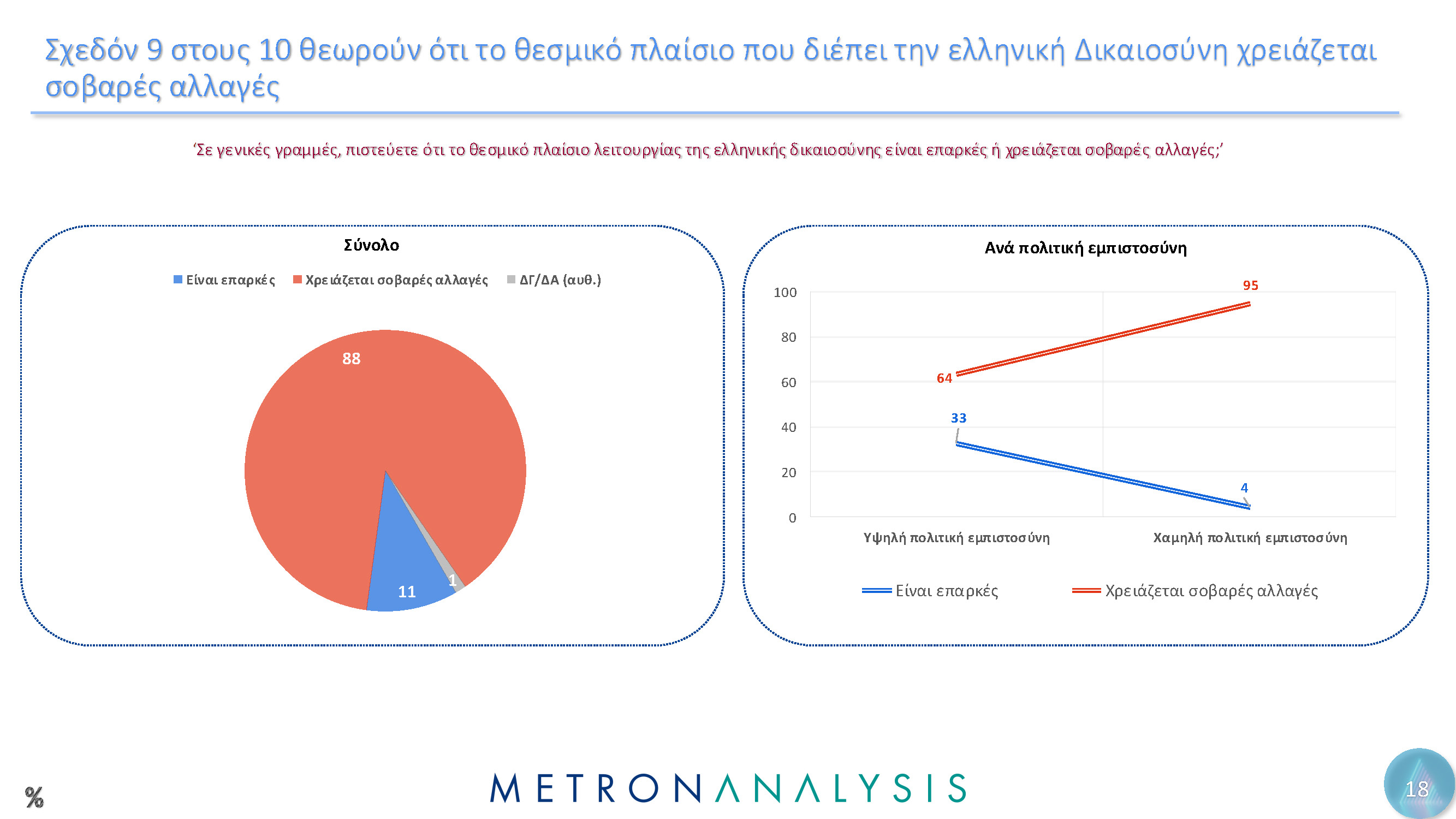 Χαμηλό βαθμό εμπιστοσύνης δίνουν οι πολίτες στα πολιτικά κόμματα, τη Δικαιοσύνη και τους ευρωπαϊκούς θεσμούς, σε δημοσκόπηση της Metron Analysis για λογαριασμό του «Ινστιτούτου Αλέξη Τσίπρα.