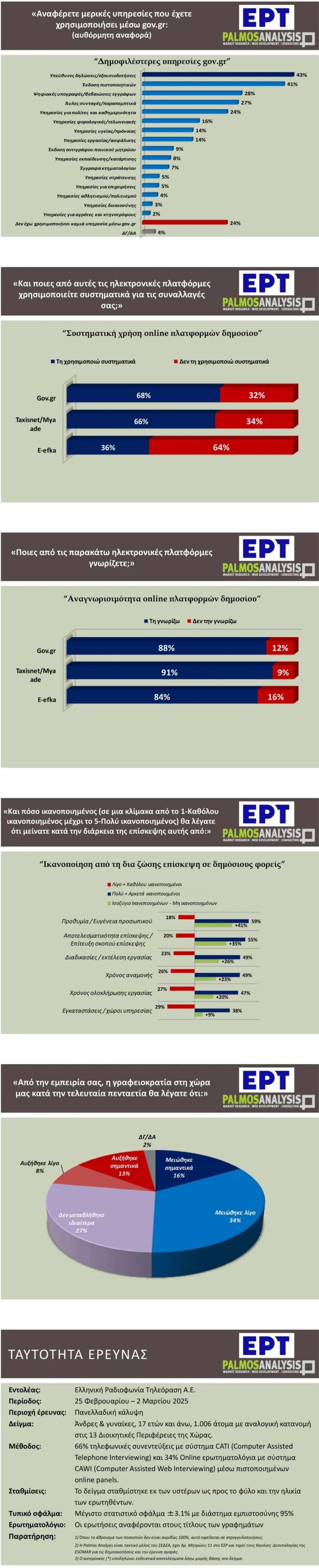 Η έρευνα της Palmos Analysis για την ΕΡΤ αναδεικνύει και τις υπηρεσίες που οι πολίτες θεωρούν ότι εξακολουθούν να έχουν σοβαρό πρόβλημα γραφειοκρατίας.