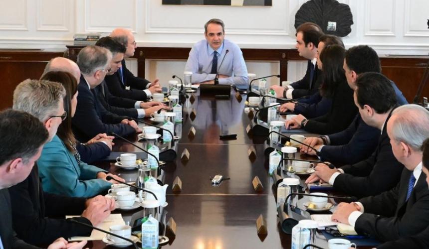 Από τις 10 το πρωί ο πρωθυπουργός συζητά εφ’ όλης της ύλης με τον αντιπρόεδρο της κυβέρνησης Κωστή Χατζηδάκη (θα συγκαλεί εφεξής το όργανο) και τους υπουργούς Οικονομικών, Περιβάλλοντος, Ανάπτυξης, Εργασίας, Υποδομών, Ναυτιλίας, Αγροτικής Ανάπτυξης, Τουρισμού, Ψηφιακής Πολιτικής.