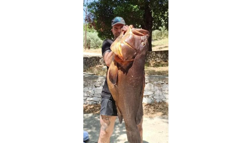 Έναν τεράστιο ροφό 27 κιλών έβγαλε από την θάλασσα ο ψαροντουφεκάς Κώστας Δαφερέρας από τον Βόλο.