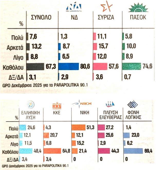 Η εφημερίδα τα ΝΕΑ παρουσιάζει σήμερα, Παρασκευή, ένα στοιχείο από δημοσκόπηση της GPO για τα Παραπολιτικά FM τον Δεκέμβριο που αποτυπώνει τις δεξαμενές από τις οποίες αντλεί ψηφοφόρους το κόμμα Καρυστιανού.