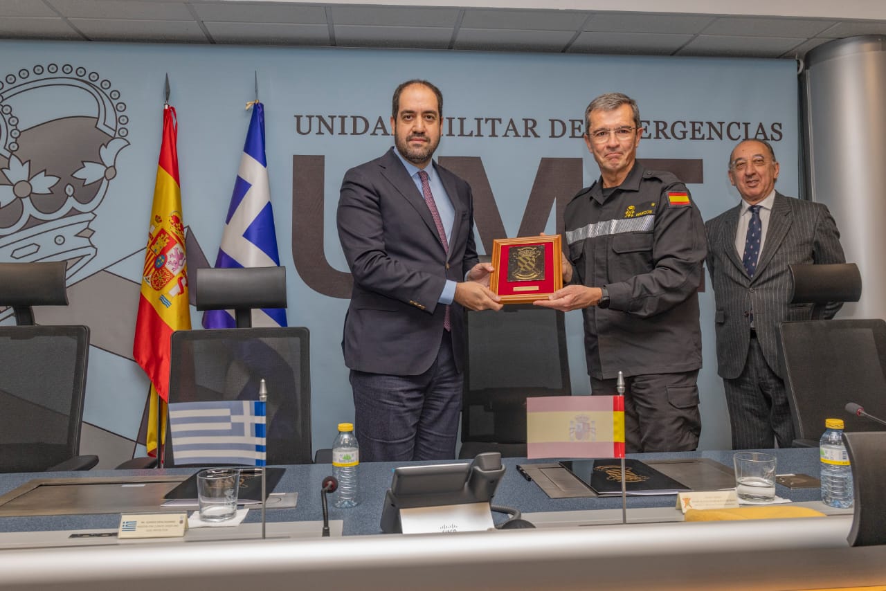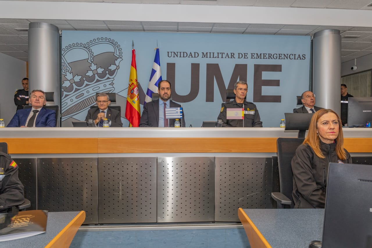 Τέλος, ο κ. Κεφαλογιάννης επισκέφθηκε τις εγκαταστάσεις της UME (Unidad Militar de Emergencias) στην αεροπορική βάση Torrejón, όπου συναντήθηκε με τον Επικεφαλής της UME, Αντιστράτηγο Francisco Javier Marcos Izquierdo και ενημερώθηκε για την οργάνωση, τη λειτουργία και τη διαδικασία ενεργοποίησης της Μονάδας.