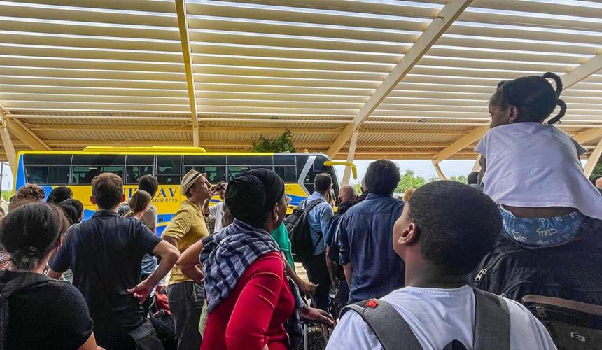 Οι Γάλλοι είναι οι μοναδικοί ταξιδιώτες που βρίσκονται στο αεροδρόμιο. Έφτασαν εκεί με ιδιωτικά μέσα, κρατώντας μόνο από ένα μικρό σακίδιο, όπως τους ζήτησε το προξενείο της χώρας του που τους ενημέρωσε τα ξημερώματα για την επιχείρηση εκκένωσης, μία εβδομάδα μετά το πραξικόπημα στον Νίγηρα.