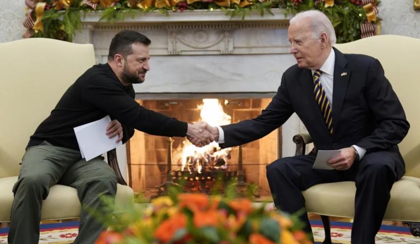 «Θα παραμείνουμε στο πλευρό σας», τόνισε ο Μπάιντεν, διαβεβαιώνοντας τον Ζελένσκι πως η Ουκρανία θα εξακολουθήσει να έχει τη στήριξη των ΗΠΑ.