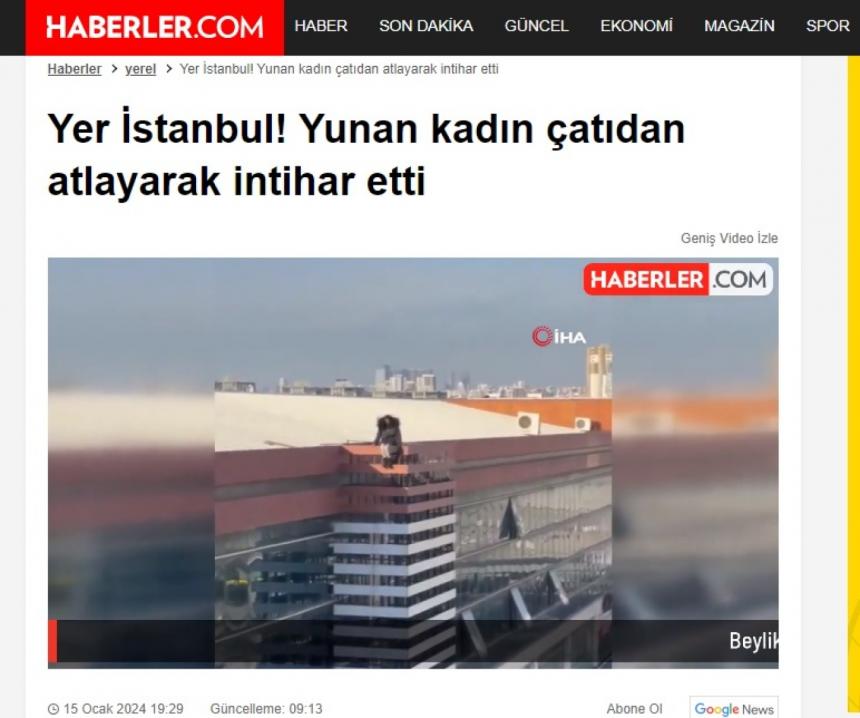 Σύμφωνα με τα τουρκικά ΜΜΕ, το όνομα της 54χρονης που βούτηξε στο κενό ήταν Ελένη Μπουλούντα.