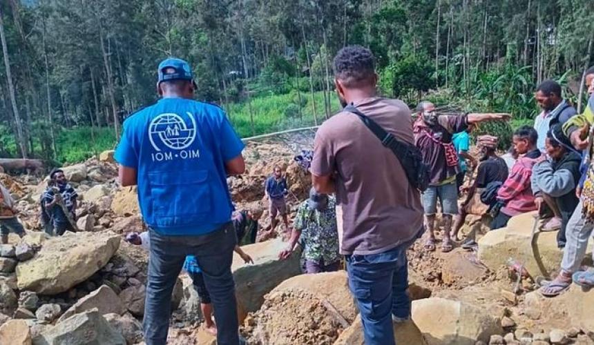 Η κατολίσθηση ισοπέδωσε το ορεινό χωριό Καοκαλάμ στην επαρχία Ένγκα - περίπου 600 χιλιόμετρα βορειοδυτικά της πρωτεύουσας.