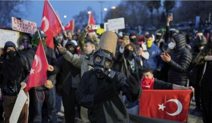Παρά την απαγόρευση των συγκεντρώσεων στους δρόμους σε πολλές πόλεις, εκατοντάδες χιλιάδες συγκεντρώθηκαν για να διαδηλώσουν για έκτη συνεχή νύχτα τη Δευτέρα (24/3), αφού ο δήμαρχος της Κωνσταντινούπολης συνελήφθη επίσημα και κρατήθηκε εν αναμονή της δίκης για κατηγορίες διαφθοράς – κάτι που ο ίδιος αρνείται.
