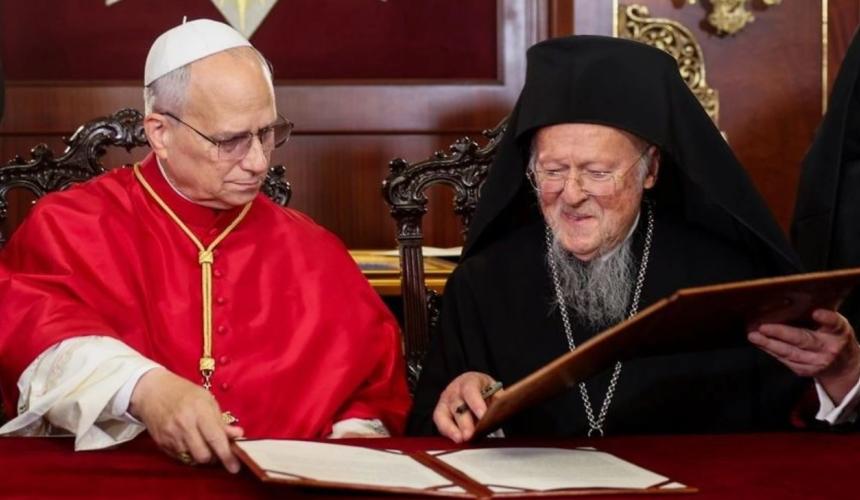 Ιστορία γράφτηκε το μεσημέρι του Σαββάτου (29/11)στο Οικουμενικό Πατριαρχείο στο Φανάρι, καθώς ο Πάπας Λέοντας ΙΔ’ και Οικουμενικός Πατριάρχης Βαρθολομαίος υπέγραψαν στην Αίθουσα του Θρόνου του Πατριαρχικού Οίκου Κοινή Δήλωση.