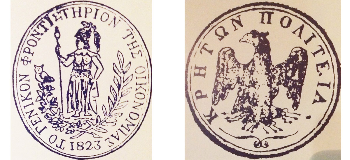 Δεξιά: Η σφραγίδα της γενικής διοίκησης Κρήτης 1821