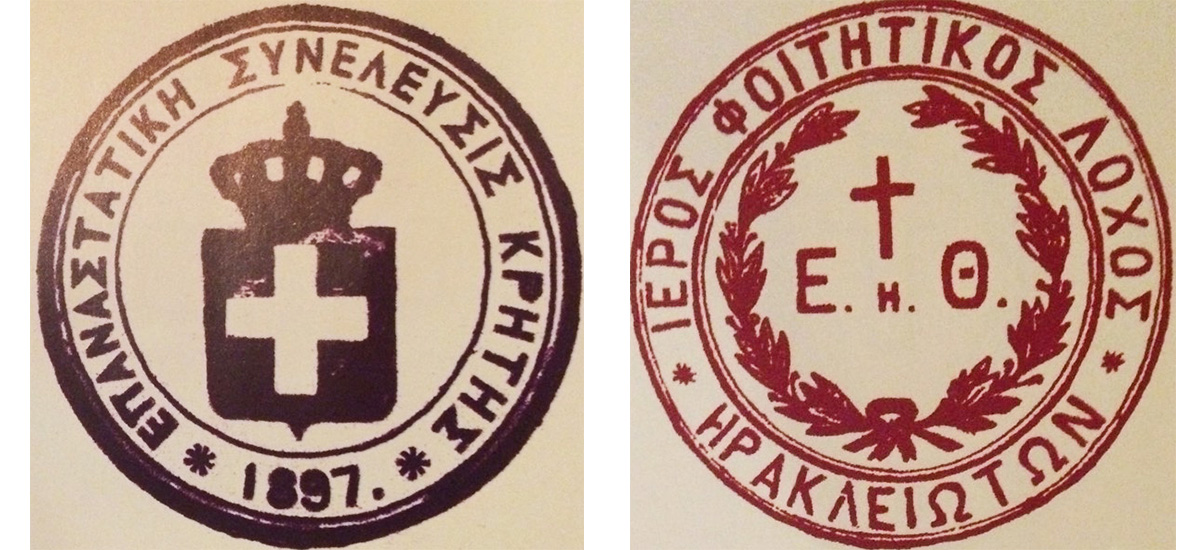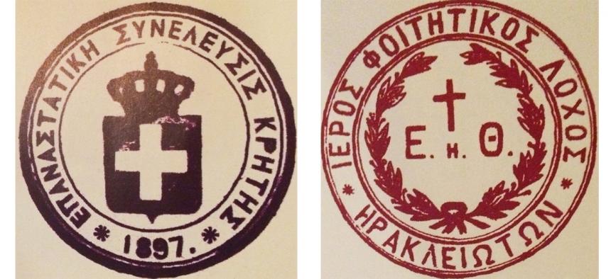 Δεξιά: Η σφραγίδα του Ιερού Φοιτητικού Λόχου του Ηρακλείου
