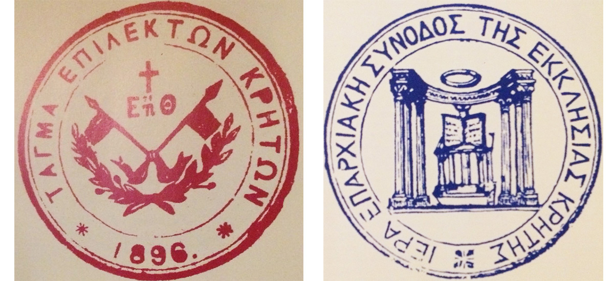 Δεξιά: Η σφραγίδα της Ιεράς Επαρχιακής Συνόδου της Εκκλησίας Κρήτης