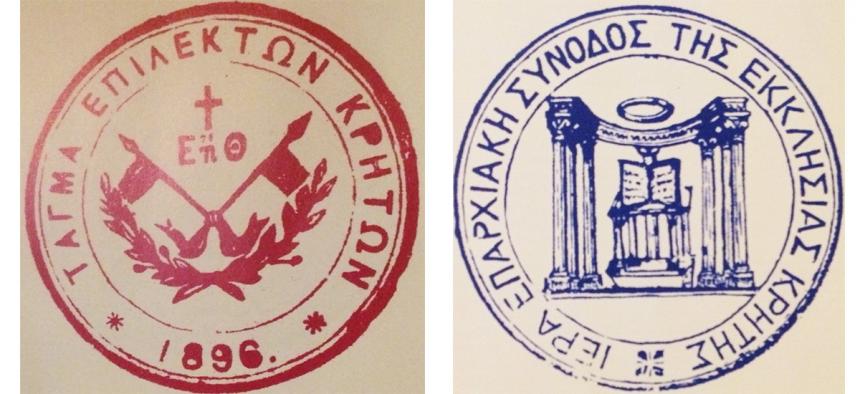 Πρόκειται για την σφραγίδα της Ιεράς Επαρχιακής Συνόδου της Εκκλησίας Κρήτης. Μάλιστα ο Τίτος Επίσκοπος Πέτρας όταν ελευθερώθηκε η Κρήτη ανέφερε σε επιστολή του: Επιτέλους δυνάμεθα και ημείς οι Κρήτες να ονομάσωμεν εαυτούς με το γλυκύτατον όνομα ελευθέρους.