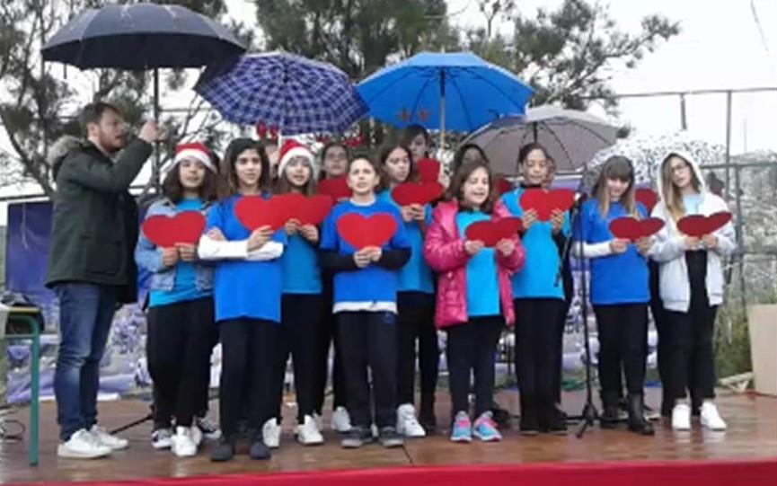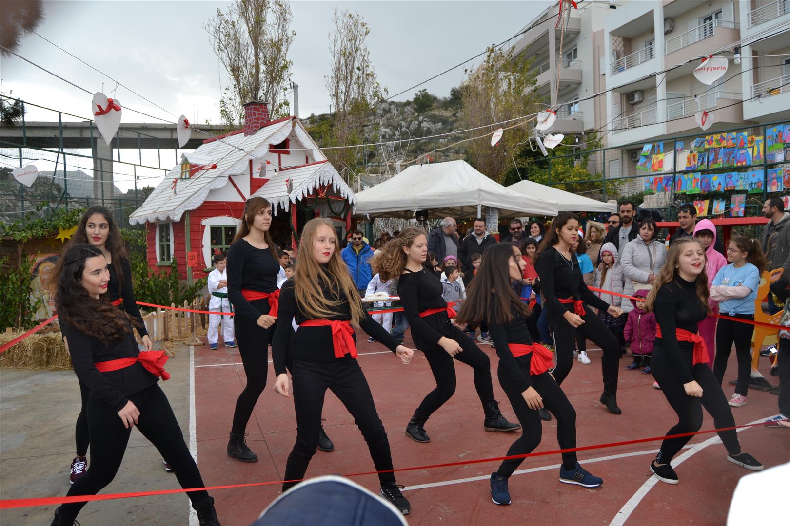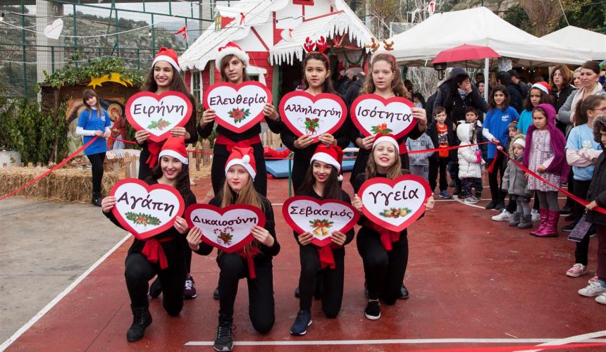 Μπροστά στο σπιτάκι του Αϊ Βασίλη και ανάμεσα σε δεκάδες επισκέπτες, τα παιδιά του Πειραματικού Γυμνασίου χόρεψαν κάτω από τους χριστουγεννιάτικους ήχους του «My only wish». Στο κλείσιμο του χορευτικού «άνοιξαν» τις καρδιές τους στο κοινό και έστειλαν τις δικές τους ευχές για ειρήνη, ισότητα, δικαιοσύνη και αλληλεγγύη, αποσπώντας το θερμό χειροκρότημα των θεατών. Τη σκυτάλη πήρε το γνωστό τραγούδι του John Lennon «Imagine» από τη χορωδία του Πειραματικού Γυμνασίου με τη συνοδεία του μουσικού Νίκου Περπιράκη. Τέλος, τα παιδιά της έκτης τάξης του Δημοτικού ανέβηκαν στη σκηνή και μαζί με τα παιδιά του γυμνασίου ένωσαν τις μελωδικές φωνές τους για να τραγουδήσουν το «Όπου υπάρχει αγάπη» και να δώσουν κι αυτά το δικό τους δυνατό μήνυμα αλληλεγγύης και προσφοράς.