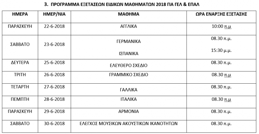 Οι υποψήφιοι των ΓΕΛ και ΕΠΑΛ που εξετάζονται στις 19 και 20, 21 Ιουνίου αντίστοιχα, όπως και οι υποψήφιοι που συμμετέχουν στις εξετάσεις ειδικών μαθημάτων από 22 μέχρι και 30 Ιουνίου 2018, εφόσον συμπίπτει η ημέρα πρακτικής δοκιμασίας με αυτή της εξέτασής τους, μπορούν να ζητούν από την οικεία Επιτροπή, η οποία και οφείλει να ορίζει, διαφορετική ημέρα εξέτασης.