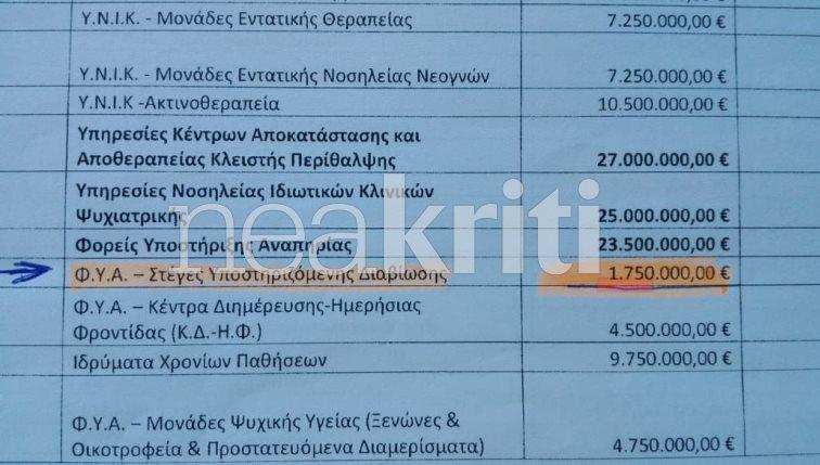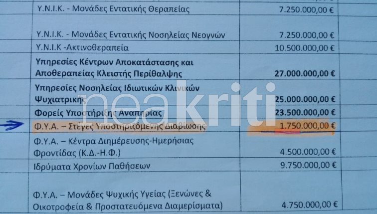 Σήμερα, επτά δομές της Κρήτης φιλοξενούν 40 περίπου άτομα με αναπηρία, ενώ συνολικά στην Ελλάδα οι δομές ανέρχονται στις 80. Από τα 7 εκατομμύρια ευρώ ετησίως που ήταν η δαπάνη του Δημοσίου από το 2014 που ολοκληρώθηκε ως ευρωπαϊκό πρόγραμμα, η πρόσφατη απόφαση περιορίζει το κονδύλι για τις 80 δομές της χώρας σε 3,5 εκατομμύρια ευρώ τον χρόνο, ποσό που είναι αδύνατο να καλύψει έστω και υποτυπωδώς τις στέγες που πάνε για λουκέτο, εφόσον δεν ανακληθεί η απόφαση.
