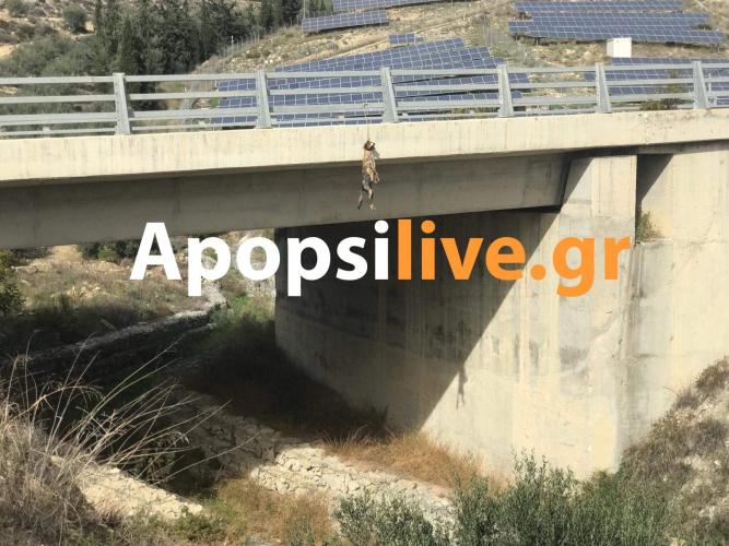 To σώμα του άτυχου τετράποδου, όπως φαίνεται και στις φωτογραφίες, βρίσκεται σε προχωρημένη σήψη κάτι που μαρτυρά πως είναι αρκετές ημέρες κρεμασμένος στην γέφυρα.