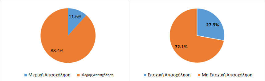Διάγραμμα 6 (Δεξιά): Κατανομή εργαζόμενων αποφοίτων σε εποχική και μη απασχόληση