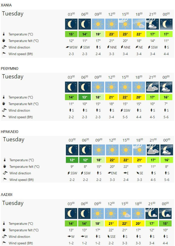 ΚΡΗΤΗ 14.04.2020 07:30Ο καιρός στην Κρήτη σήμερα Τρίτη 14 Απριλίου Ρέθεμνος Newsroom Facebook Twitter Copy link 0 Την Τρίτη 14 Απριλίου 2020 αναμένονται τοπικές βροχές κυρίως στα βόρεια. Η θερμοκρασία δεν θα παρουσιάσει αξιόλογη μεταβολή. Οι νότιοι άνεμοι στο Αιγαίο θα φτάνουν τα 5 και από το απόγευμα τοπικά τα 6 μποφόρ. meteoblue.gr 0 Facebook Twitter Copy link καιρός ΣΧΕΤΙΚΑ ΑΡΘΡΑ Κρήτη 27.11.2025 19:33Έντονη Μετεωρολογική Προειδοποίηση για την Κρήτη: «Μια πολύ επικίνδυνη κατάσταση περιφέρεται γύρω από το νησί» προειδοποιεί ο Ζαχαρής Βάρδας Κρήτη 18.08.2020 08:00Κρήτη: Πολύ υψηλός ο κίνδυνος πυρκαγιάς σήμερα Κρήτη 04.08.2020 07:30Ο καιρός στην Κρήτη σήμερα Τρίτη 4 Αυγούστου Κρήτη 02.08.2020 19:30Yψηλές θερμοκρασίες και την Κυριακή στην Κρήτη