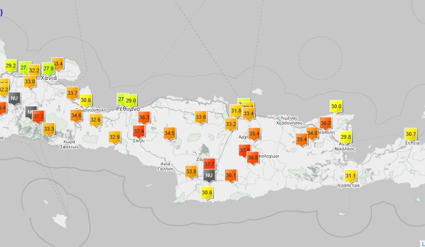 Ο υδράργυρος σε αρκετές περιοχές, όπως φαίνεται και στα δεδομένα που έρχονται από τους μετεωρολογικούς σταθμούς του Εθνικού Αστεροσκοπείου Αθηνών και της Αποκεντρωμένης Διοίκησης Κρήτης, "χτυπάει" κόκινο.