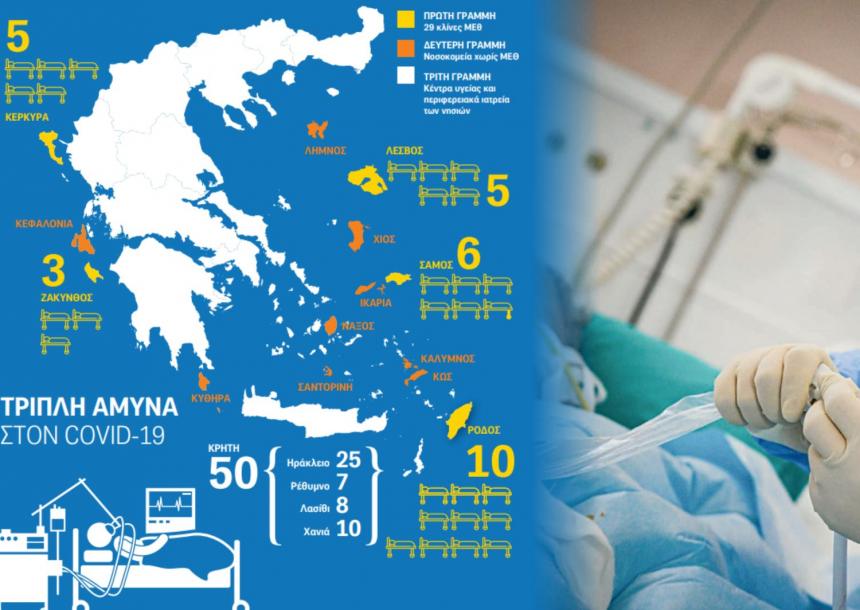 Σύμφωνα με το σχέδιο που επεξεργάζεται το υπουργείο Υγείας, η νησιωτική χώρα έχει χωριστεί σε τρεις ζώνες, αναλόγως της προσβασιμότητας των νησιών σε δομές Υγείας: Όσα νησιά θεωρούνται «χαμηλού κινδύνου» (επίπεδο επικινδυνότητας 3) και πρόκειται για την Κρήτη, που από μόνη της διαθέτει ένα επαρκές σύστημα Υγείας, και όσα νησιά βρίσκονται σε απόσταση μιάμισης ώρας (με πλοίο ή αυτοκίνητο) σε τριτοβάθμιες δομές Υγείας, όπως δηλαδή, τα νησιά του Αργοσαρωνικού, οι κοντινές Κυκλάδες και η Εύβοια.