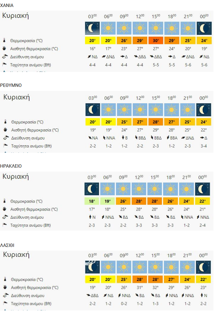 ΚΡΗΤΗ 14.06.2020 07:30Ο καιρός στην Κρήτη σήμερα Κυριακή 14 Ιουνίου Ρέθεμνος Newsroom Facebook Twitter Copy link 0 Ηλιοφάνεια, νεφώσεις αυξημένες τις θερμές ώρες στα ηπειρωτικά, τοπικές βροχές ή καταιγίδες στα βορειοανατολικά, μέτριοι άνεμοι στα πελάγη και τοπικά μετά το απόγευμα ισχυροί, θερμοκρασία σε άνοδο κυρίως στα κεντρικά ηπειρωτικά. meteoblue.gr 0 Facebook Twitter Copy link καιρός ΣΧΕΤΙΚΑ ΑΡΘΡΑ Κρήτη 27.11.2025 19:33Έντονη Μετεωρολογική Προειδοποίηση για την Κρήτη: «Μια πολύ επικίνδυνη κατάσταση περιφέρεται γύρω από το νησί» προειδοποιεί ο Ζαχαρής Βάρδας Κρήτη 18.08.2020 08:00Κρήτη: Πολύ υψηλός ο κίνδυνος πυρκαγιάς σήμερα Κρήτη 04.08.2020 07:30Ο καιρός στην Κρήτη σήμερα Τρίτη 4 Αυγούστου Κρήτη 02.08.2020 19:30Yψηλές θερμοκρασίες και την Κυριακή στην Κρήτη
