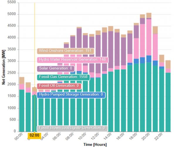 Συγκεκριμένα, σύμφωνα με τα επίσημα στοιχεία του ΑΔΜΗΕ, η ζήτηση της 8ης Ιουνίου (95.728 μεγαβατώρες) καλύφθηκε κατά 57,65% από μονάδες φυσικού αερίου, 14,23% υδροηλεκτρικά, 4,92% ανανεώσιμες πηγές και 23,21% από εισαγωγές., εικόνα 1.