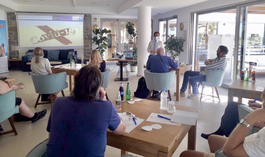 Ο Περιφερειάρχης Κρήτης Σταύρος Αρναουτάκης καλωσορίζοντας τους Γερμανούς πράκτορες και δημοσιογράφους τους ευχαρίστησε για την παρουσία τους στο νησί και για την θέληση τους στην δύσκολη συγκυρία να ενισχύσουν τον τουρισμό της Κρήτης. Ο κ Αρναουτακης αναφέρθηκε στην συνεργασία της Περιφέρειας με τους φορείς του τουρισμού στα μέτρα ασφαλείας και ότι η Κρήτη έχει καταγράψει ελάχιστα κρούσματα κορονοϊού και αποτελεί ασφαλή προορισμό.