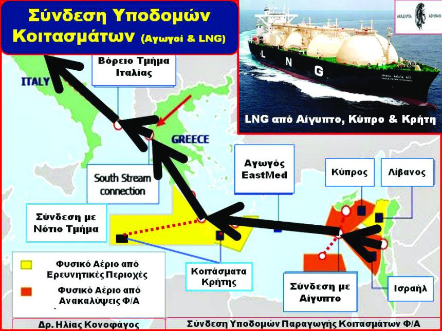 Τυχόν προσκόμιση εκ μέρους μας πλωτων γεωτρυπάνων στη υπεράκτια Κρήτη για την πιστοποίηση και αξιοποίηση Ελληνικών αποθεμάτων φυσικού αερίου η οικονομική αλλά και η πολιτική σημασία του αγωγού αυτού θα μπορούσε να αναβαθμιστεί δραματικά.