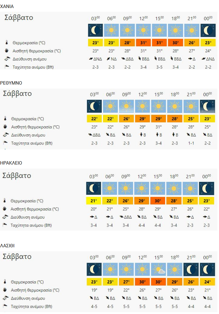 ΚΡΗΤΗ 18.07.2020 07:30Ο καιρός στην Κρήτη σήμερα Σάββατο 18 Ιουλίου Ρέθεμνος Newsroom Facebook Twitter Copy link 0 Ηλιοφάνεια, νεφώσεις αυξημένες τις θερμές ώρες της ημέρας στα κεντρικά και βόρεια ηπειρωτικά, τοπικές βροχές ή καταιγίδες στα βόρεια, ισχυροί βοριάδες στο Αιγαίο, θερμοκρασία χωρίς αξιόλογη μεταβολή. meteoblue.gr 0 Facebook Twitter Copy link καιρός ΣΧΕΤΙΚΑ ΑΡΘΡΑ Κρήτη 27.11.2025 19:33Έντονη Μετεωρολογική Προειδοποίηση για την Κρήτη: «Μια πολύ επικίνδυνη κατάσταση περιφέρεται γύρω από το νησί» προειδοποιεί ο Ζαχαρής Βάρδας Κρήτη 18.08.2020 08:00Κρήτη: Πολύ υψηλός ο κίνδυνος πυρκαγιάς σήμερα Κρήτη 04.08.2020 07:30Ο καιρός στην Κρήτη σήμερα Τρίτη 4 Αυγούστου Κρήτη 02.08.2020 19:30Yψηλές θερμοκρασίες και την Κυριακή στην Κρήτη