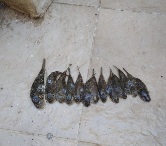 Η παρακάτω φωτογραφία απεικονίζει νανολαγοκέφαλους που Αλιεύθηκαν στην Αγία Γαλήνη.